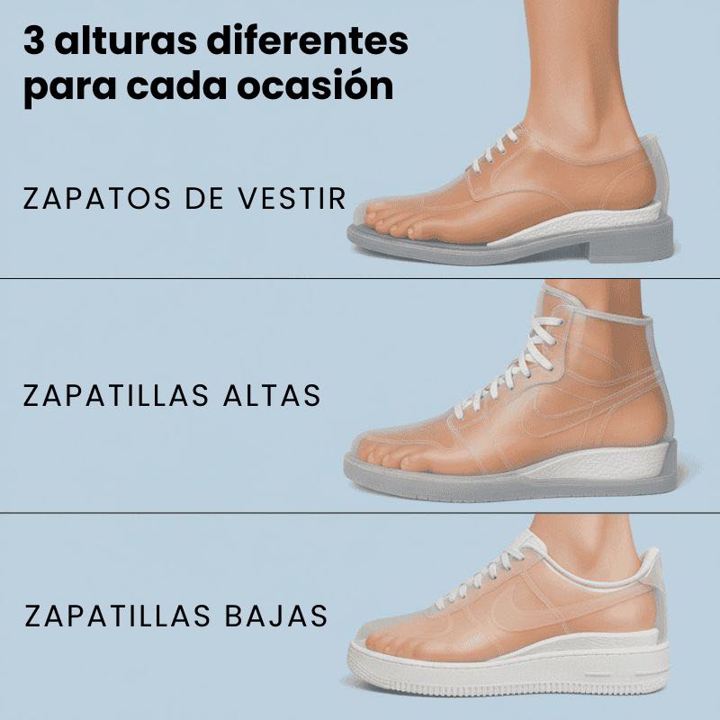 El innovador diseño ortopédico garantiza que se adapten de forma discreta a cualquier zapato y ocasión, mientras aumentan tu altura y cuidan tus articulaciones.