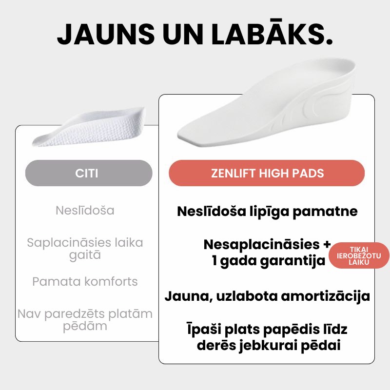 Tavas Zenlift | Augstumu palielinošas zolītes ir radītas ilgam lietošanas laikam. Ja zolītes 12 mēnešu laikā zaudē augstuma efektu vai amortizāciju, mēs tās nomainīsim bez maksas.