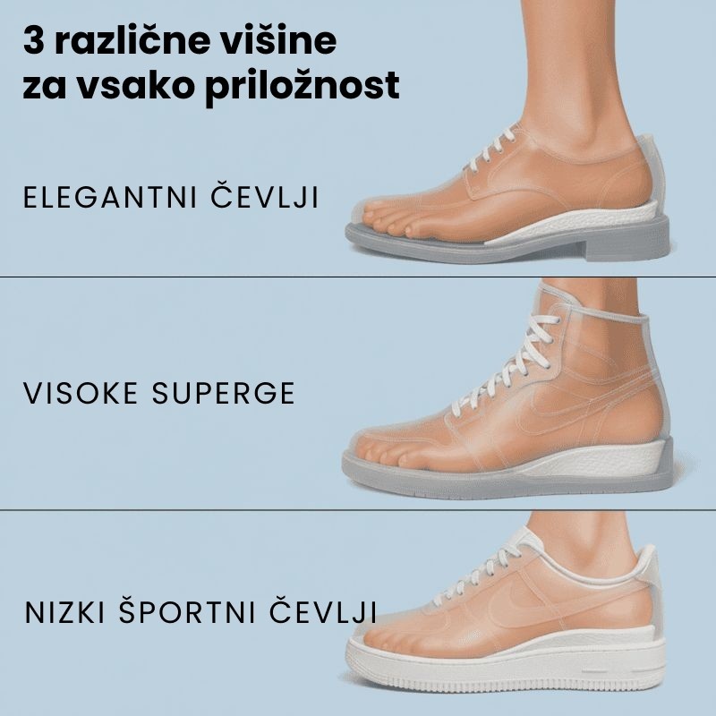 Vložki ustvarjeni na podlagi resničnih povratnih informacij uporabnikov, vam diskretno dodajo 7,6 cm višine ter zagotavljajo izjemno udobje in stabilnost – nekaj, česar na trgu še ni bilo.