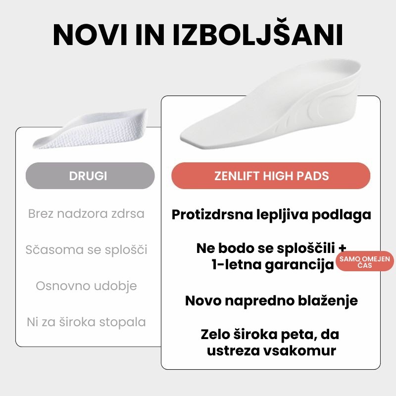 Revolucionarna ortopedska oblika našega Zenlift vložka ponuja maksimalno udobje brez kompromisov pri višini. Tako ste veliko višji in celo podpirate svoje sklepe.