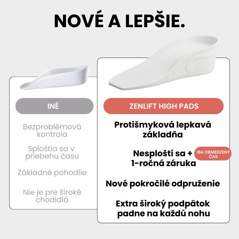 Vyvinuté na základe skutočnej spätnej väzby od zákazníkov – pridajú ti až 7,6 cm výšky nenápadne, s maximálnym pohodlím a stabilitou, aké na trhu nenájdeš.